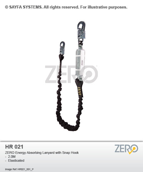 Description: ZERO Energy Absorbing Lanyard with Snap Hook – 2.0M – Elasticated