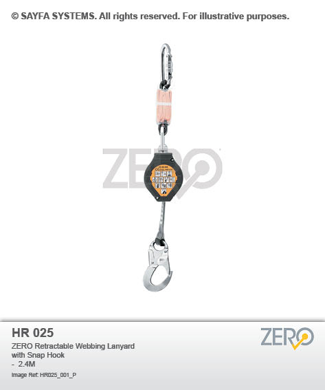 Description: ZERO Retractable Webbing Lanyard with Snap Hook – 2.4M Note: This item requires an annual recertification