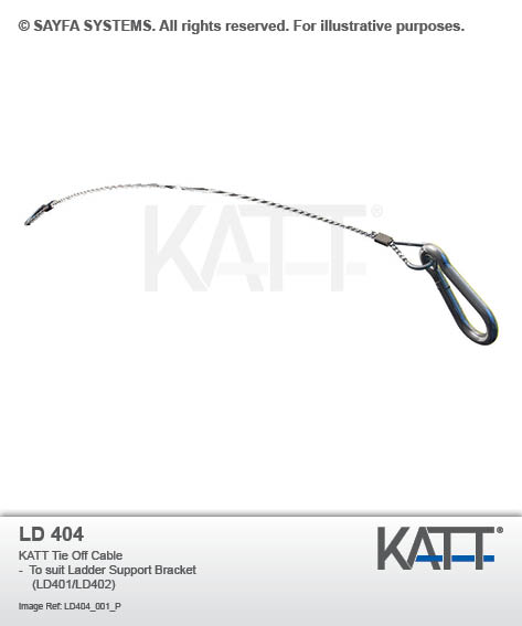 Description: KATT Tie Off Cable – To suit Ladder Support Bracket (LD401/LD402) Weight: 0.5kg