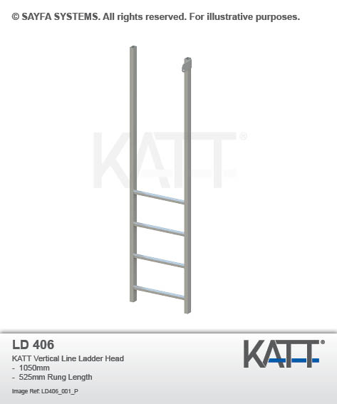 Description: KATT Vertical Line Ladder Head – 1050mm – 525mm Rung Length Note: Includes base connection bracket Weight: 7.0kg