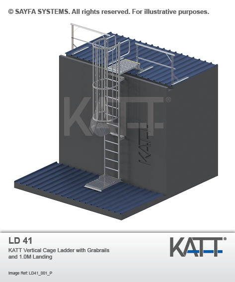 Description: KATT Vertical Cage Ladder with Grabrails and 1.0M Landing
