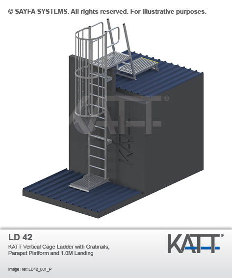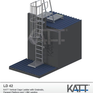 Description: KATT Vertical Cage Ladder with Grabrails, Parapet Platform and 1.0M Landing