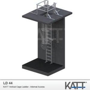 Description: KATT Vertical Cage Ladder with Midway Landing Platform – Internal Access