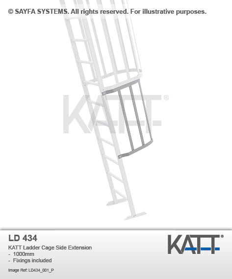 Description: KATT Ladder Cage Side Extension 1000mm – Fixings included Note: Can be used on LHS or RHS application