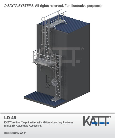 Description: KATT Vertical Cage Ladder with Midway Landing Platform and 2.4M Adjustable Access Kit