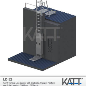 Description: KATT Vertical Line Ladder with Grabrails, Parapet Platform and 1.0M Landing (3300mm – 5700mm)