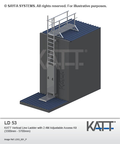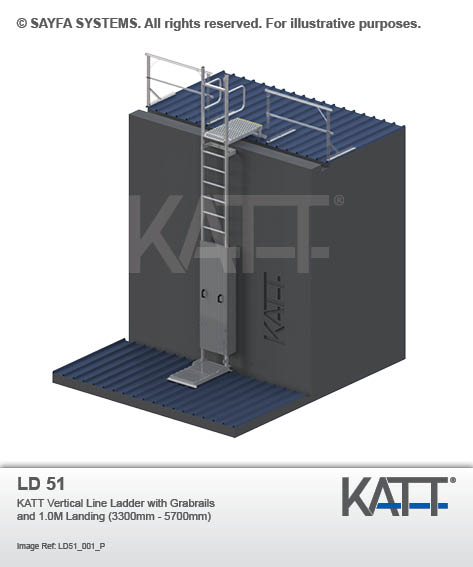 Description: KATT Vertical Line Ladder with Grabrails and 1.0M Landing (3300mm – 5700mm)