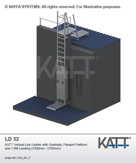 Description: KATT Vertical Line Ladder with Grabrails, Parapet Platform and 1.0M Landing (3300mm – 5700mm)