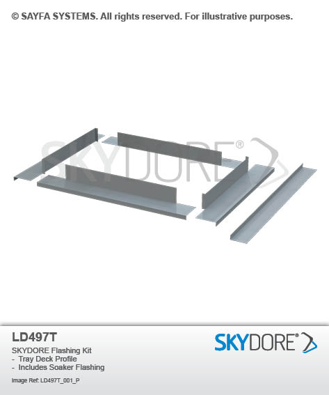 Description: SKYDORE Flashing Kit – Tray Deck Profile – Includes Soaker Flashing