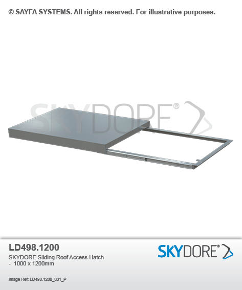 Description: SKYDORE Sliding Roof Access Hatch 1000 x 1200mm Note: Flashing excluded, select from LD498C or LD498T