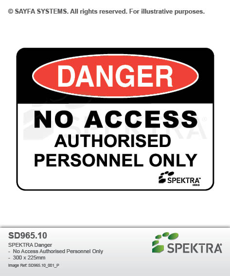 Description: SPEKTRA Danger – No Access Authorised Personnel Only – 300 x 225mm
