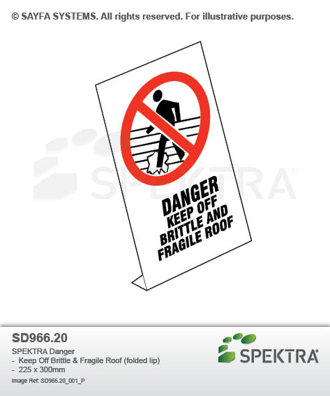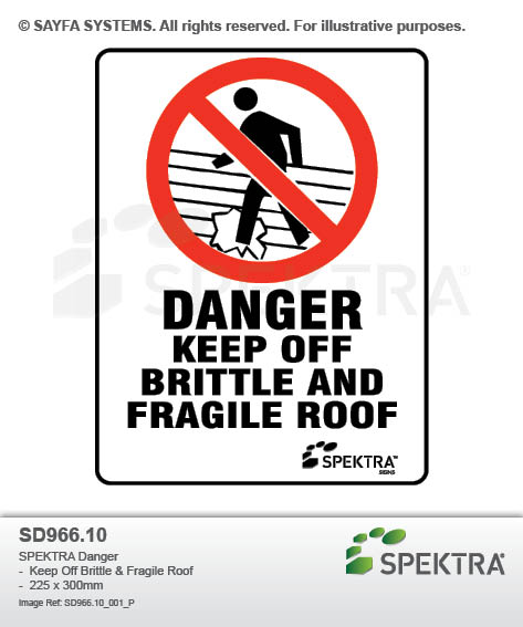 Description: SPEKTRA Danger – Keep Off Brittle & Fragile Roof (folded lip) – 225 x 300mm