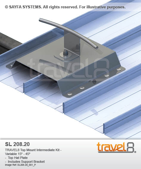 Description: TRAVEL 8 Top Mount Intermediate Kit (Variable 15°- 45°) – Top Hat Plate Note: Bending Tool for non standard corners, see SL 239 Weight: 2.4kg