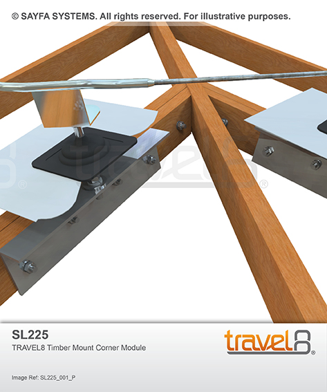 Description: TRAVEL 8 Timber Mount Corner Module Note: Custom designed & fabricated to suit Weight: 4.8kg