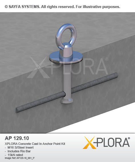 Description: XPLORA Concrete Cast In Anchor Point Kit – 15kN rated Note: ! Suitable for fall arrest/twin rope access use Weight: 0.5kg