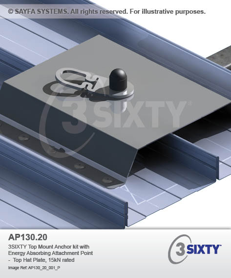 Description: 3 SIXTY Top Mount Anchor Kit with Energy Absorbing Attachment Point – Top Hat Plate, 15kN rated Note: ! Not suitable for twin rope access use Weight: 2.0kg