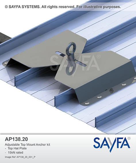 Description: Adjustable Top Mount Anchor Kit – Top Hat Plate, 15 kN rated Note: ! Not suitable for twin rope access use Weight: 2.0kg
