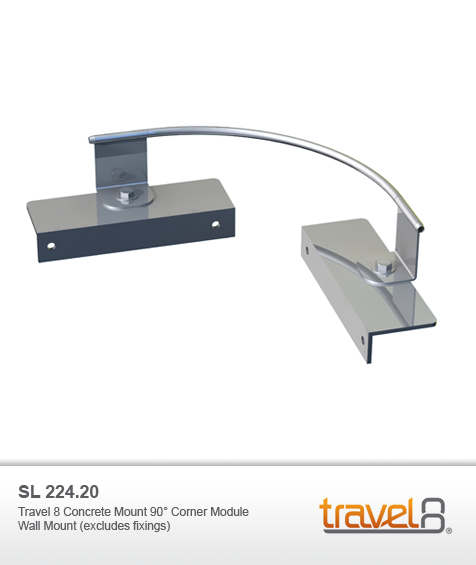 Description: TRAVEL 8 Concrete Mount 90° Corner Module – Wall Mount – Excludes Wall Fixings Weight: 2.4kg